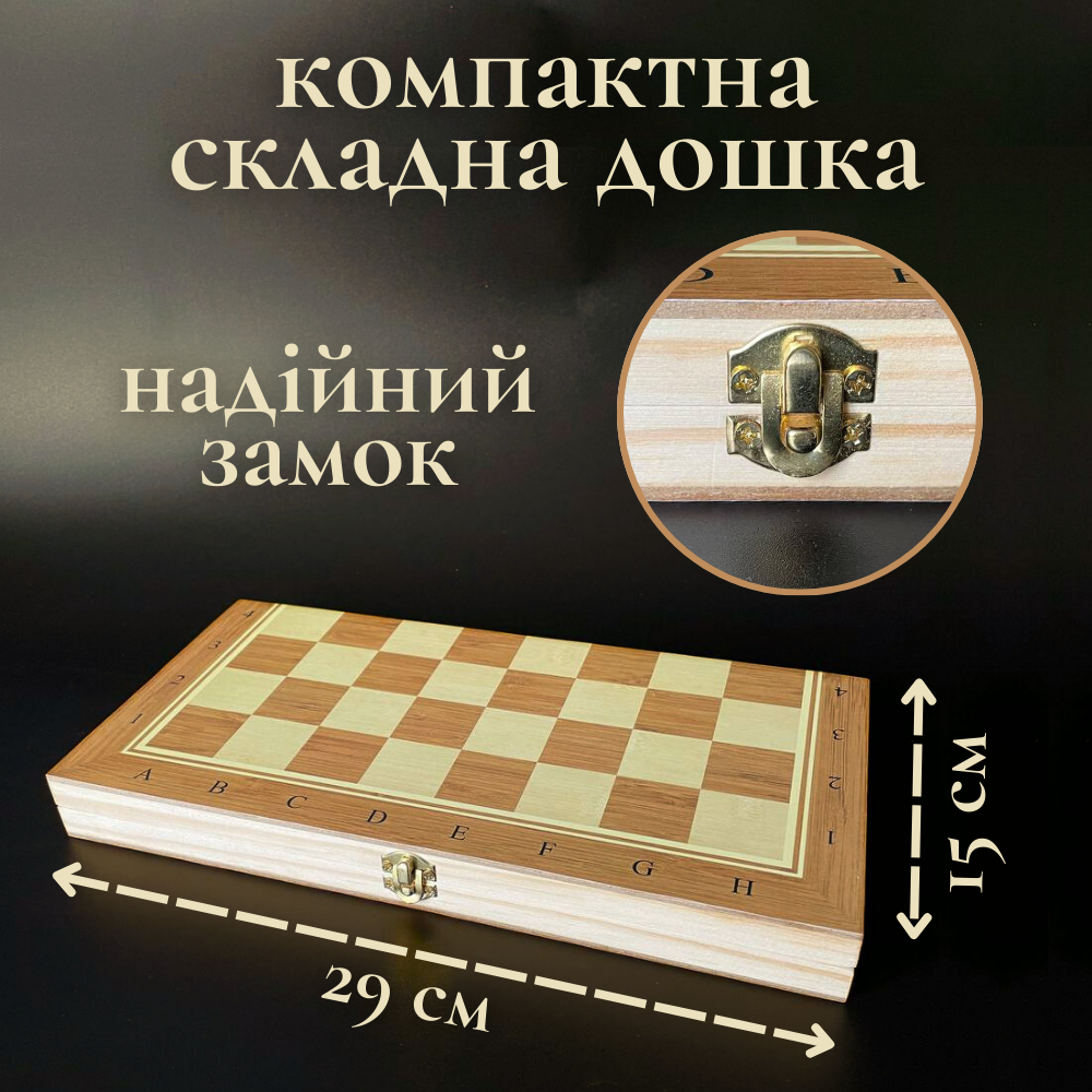 Шахи дерев'яні класичні, шахи шашки нарди 3в1, шахи шашки шахмати недорого Hechpro 29 x 29 см 8029