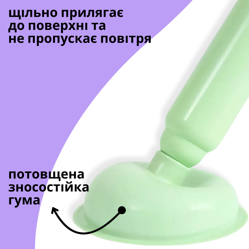 Цей універсальний пневматичний прилад забезпечить догляд за туалетними трубами, без пошкодження їхньої поверхні. Він легко миється і залишає слідів. Насадка не втрачає форму, а ручка виготовлена із високоякісного пластику з металевим стрижнем. Використання цього предмета може уникнути необхідності ремонту туалету.
