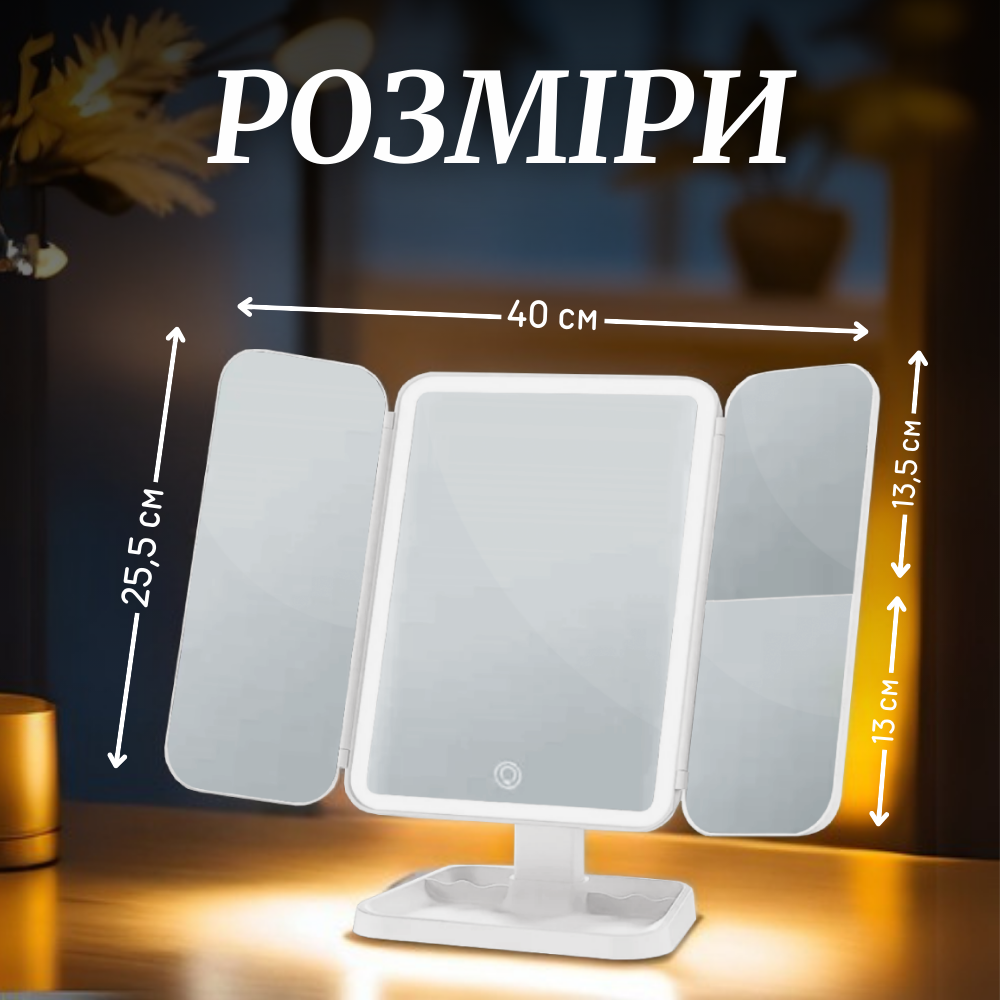 Дзеркало з підсвіткою для макіяжу, зеркало з підсвіткою настільне, дзеркало косметичне білий (3300)