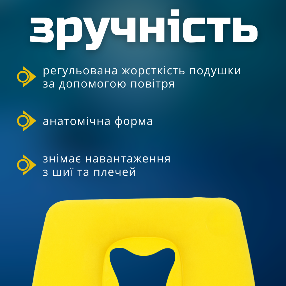 U-подібна надувна подушка підтримує голову та шию під час сидіння.