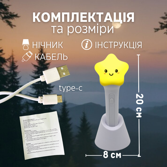 Силіконовий нічник у формі милої зірочки стане чудовим доповненням дитячої кімнати. М’яке тепле світло створює затишну атмосферу та допомагає дитині спокійно засинати. Корпус із безпечного силікону приємний на дотик і стійкий до пошкоджень. Нічник легкий, портативний та зручний у використанні – його можна поставити на підставку або взяти з собою.