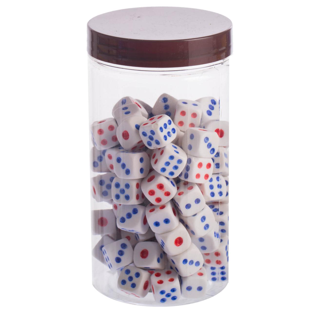 Вони виготовлені з міцного пластику і мають стандартну форму невеликих кубиків із шістьма гранями. На кожну грань кубика нанесені білі точки, що позначають число від 1 до 6. Розмір кубика є стандартним і забезпечує їх універсальність.