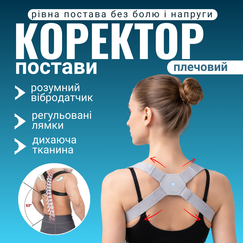 Коректор для спини від сутулості, корсет для плечей від сколіозу, реклінатор на спину для постави (SMART)