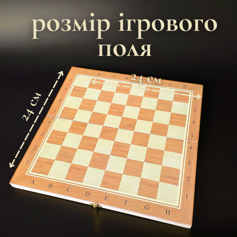 Шахмати шашки нарди дерев'яні набір 3в1 дошка з дерева маленькі 3 в 1 24 на 24