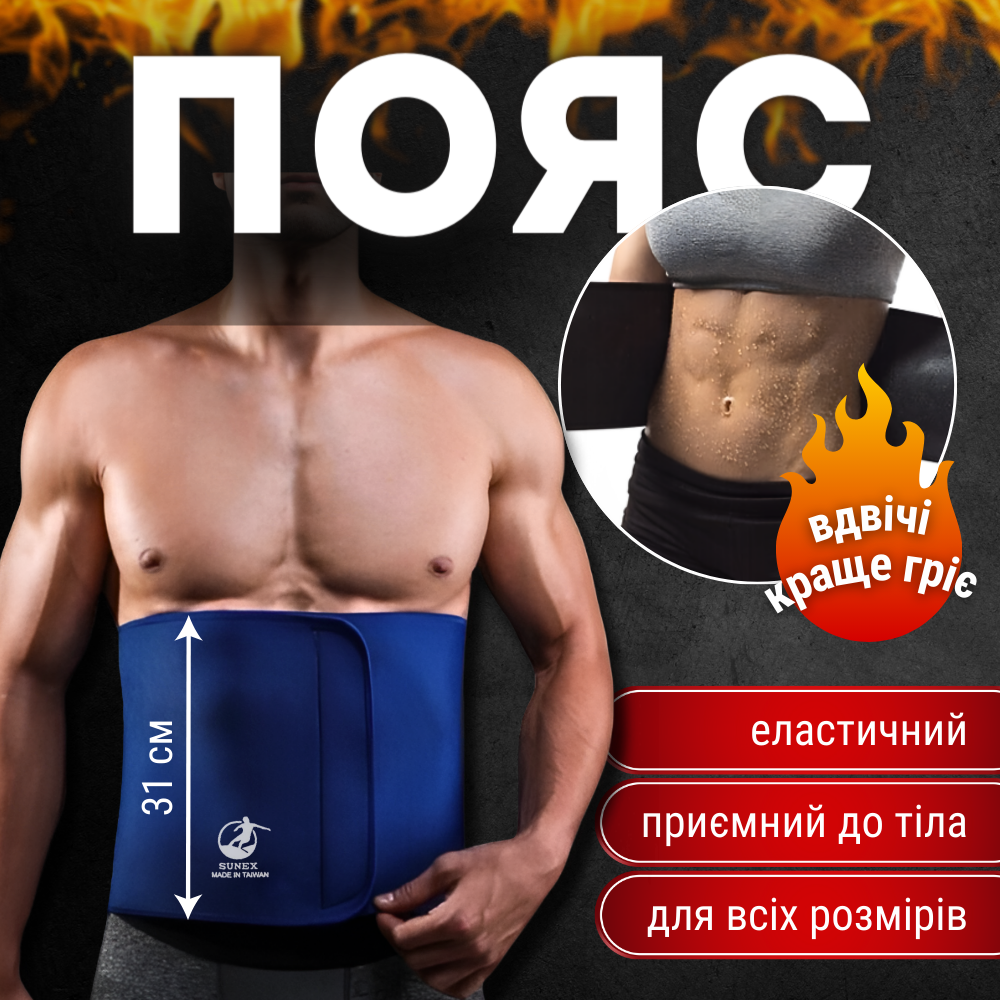 Утягуючий пояс для схуднення з ефектом сауни, Пояс для корекції фігури Неопреновий SUNEX Синій (52)